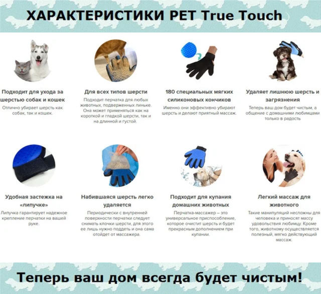 Рукавичка для хатніх тварин True Touch стане незамінним аксесуаром у догляді за хатніми вихованцями.