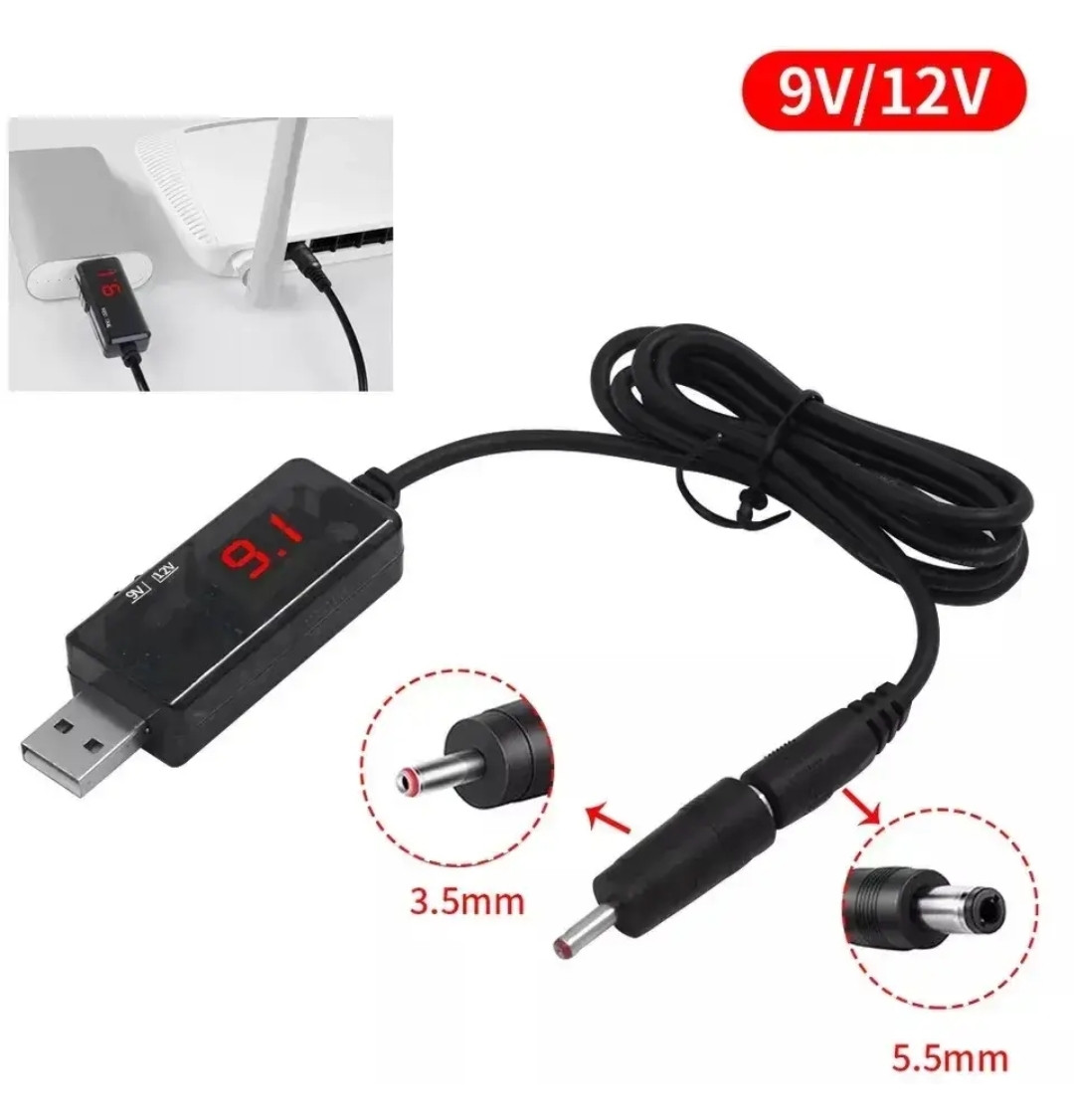 USB кабель живлення для роутерів та інших пристроїв з живленням 9 або 12 вольт.