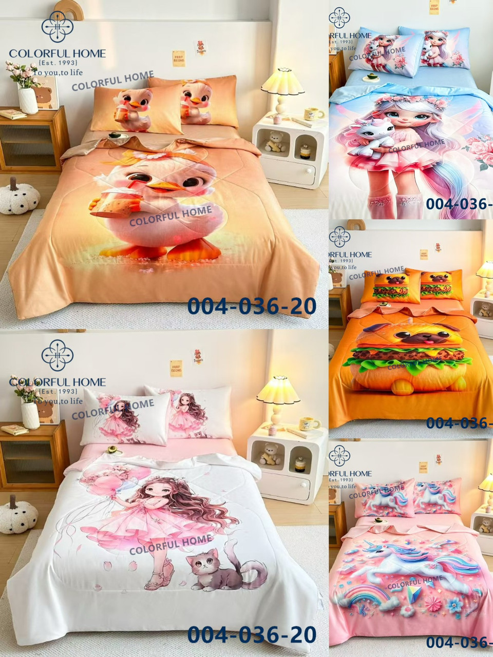 *Постільна полуторна білизна з дитячими малюнками та літнім одеялом*